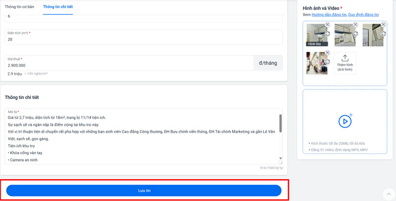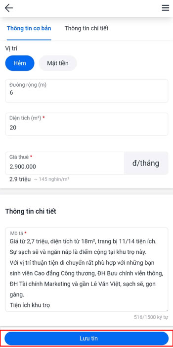 Bước 4: Tiến hành sửa thông tin mà bạn cần sửa, sau đó nhấn nút Lưu tin.