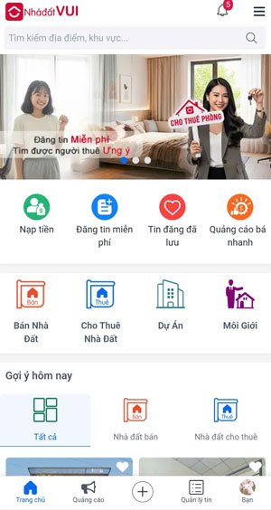 Bước 1: Truy cập vào website www.nhadatvui.vn bằng trình duyệt trên điện thoại hoặc máy tính.