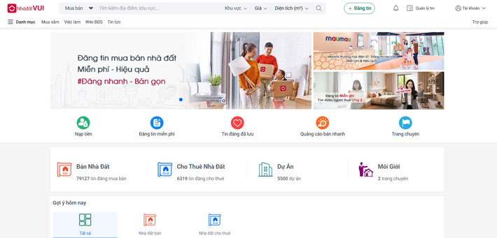Bước 1: Truy cập vào website www.nhadatvui.vn bằng trình duyệt trên điện thoại hoặc máy tính.